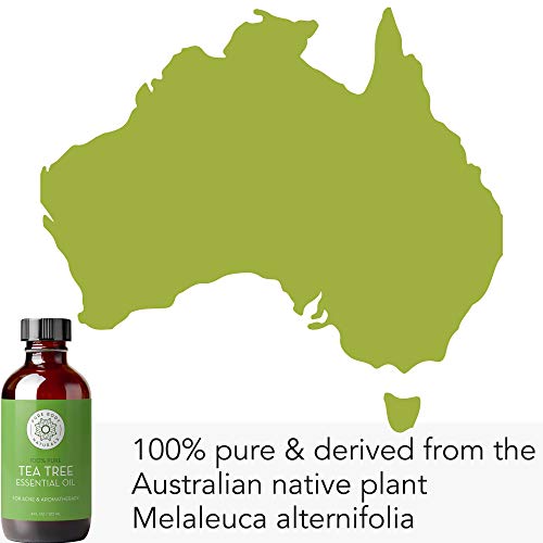 Tea Tree Essential Oil, 4 Fl Oz with dropper – Undiluted Therapeutic Grade for Your Face, Skin, Hair and Diffuser – 100% Pure Melaleuca Oil for Acne, Toenails, Skin Tag Removal – by Pure Body Naturals