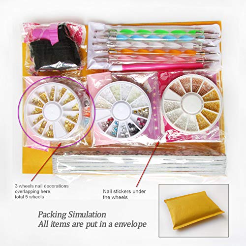 Nail Art Tools Decoration Manicure Pedicure Tool Set Kit 48Pcs Nail Stickers, 5 Boxes Nail Beads Rhinestones Stone Gold Metal Studs,
