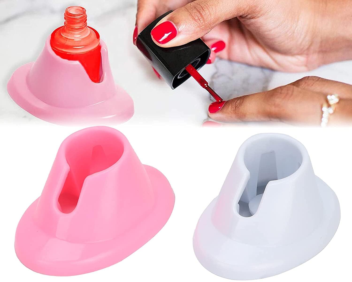 2Pcs Pink and White Soft Rubber Nail Polish Bottle Holder Nail Polish Stand Anti-Spill Nail Art Organizer Display Manicure Tools for Nail Art Salon Professional Design Nail Art and Polish