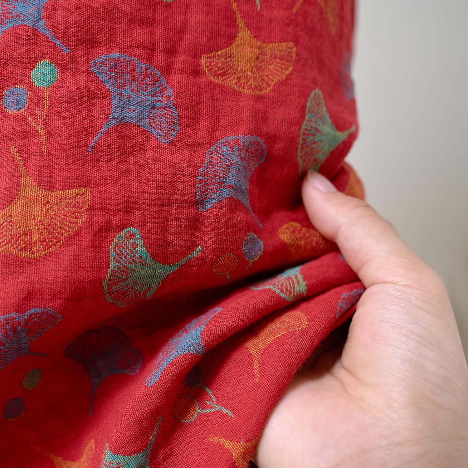 100% Cotton Gauze Ginkgo Leaf Kimono Robe, Long Knit Loose Bathrobe Nightgown Ladies Loungewear Sleepwear for Women