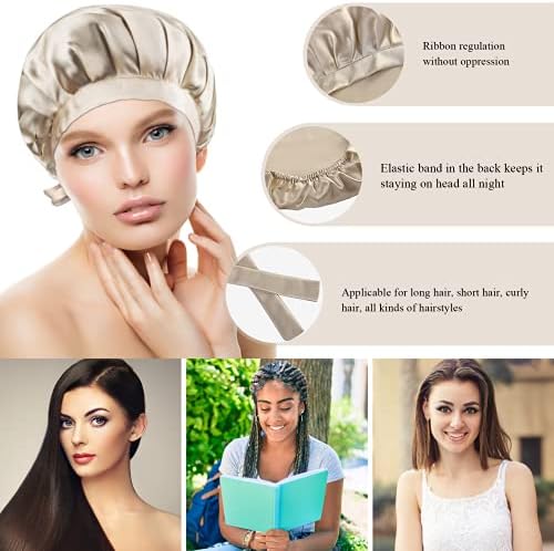 SILK NIGHT CAP FOR MOST PEOPLE: The Bonnet with Adjustable Ribbons are designed for the most average adult sized head. Great for holding natural hair, braids, weaves, rollers, hair clamps, long hair, and etc. It stays roomy snug on head and protects hair from pulling.