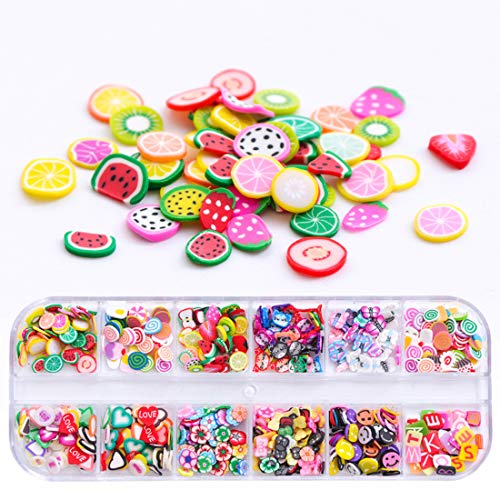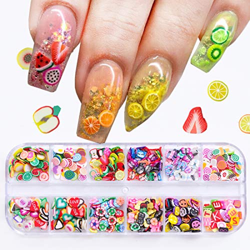 12 Boxes Nail Art Slices Fruit Flower 3D Nail Art Fimo Sweet Nail Stickers Supplies Women Kids Girls Slime Nail Decoration Kit Manicure Tips Summer Beauty Charms Nail Decals for Acrylic Nails