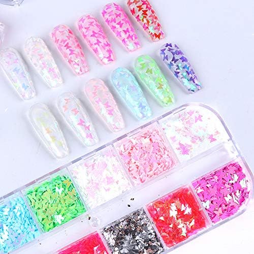 12 Colors Butterfly Glitter Nail Sequins Holographic 3D Nail Art Flakes Colorful Confetti Glitter Sticker,Nail Art Design Makeup DIY Decoration Kit,Nail Sequins for Face Body Eye Hair
