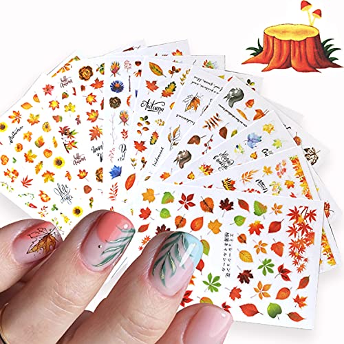 Description: Autumn Nail Art Decals Fall Maple Leaf Nail Stickers for Nail Art Leave Flower Squirrel Nail Art Supplies 3D Nail Decoration Kit Women Kids Girls Nail Charms Nail Decals for Acrylic Nails