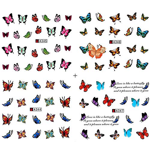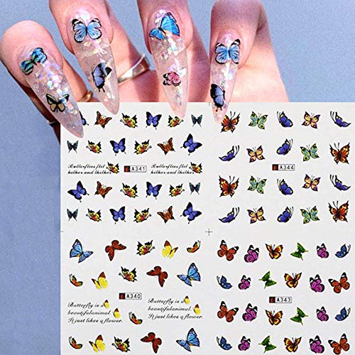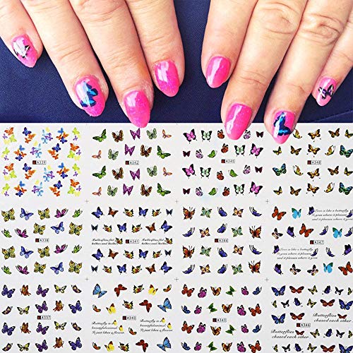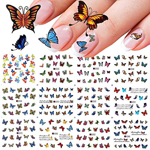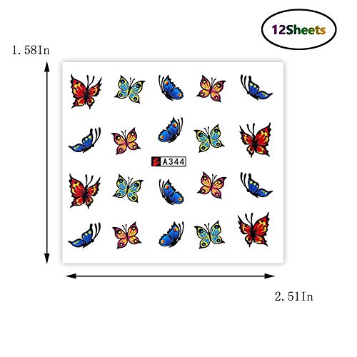12 Sheets Butterfly Nail Art Sticker Decals Nail Foil Accessories Decorations Nail Stickers for Women Girls Kids 200+ Patterns Colorful Butteries