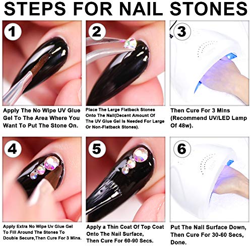 ❤HOW TO USE –1.Apply a Layer Of The Glue On The Nail. Make Sure The Amount Is Enough To Hold The Back Of The Stones. 2.Put The Stones On Till You Feel The Stones Are Connected To The Nail Surface Well Via The Glue, Then Cure For 3 Mins(Recommend LED Lamp Of 48w). 3.Fill Extra Glue Into The Gaps Between The Nail And The Back Of Stones To Have Them All Connected Well Together. Then Cure For 3 Mins. 4.Apply a Thin Layer Of No Wipe Top Coat Or Rhinestone Glue On Nail Surface, Cure For 60-90s.
