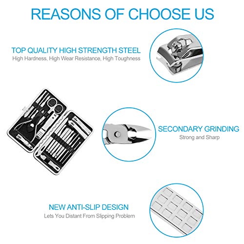NEW UPGRADED MATENAL: The manicure set is made of 100% top quality high strength steel, new anti-slip design, secondary grinding, sharp, strong, durable, pretty, it can be to provide a comfortable and sound life for you.