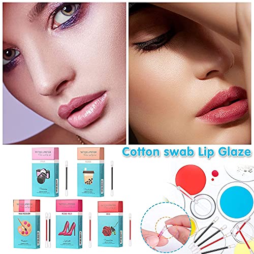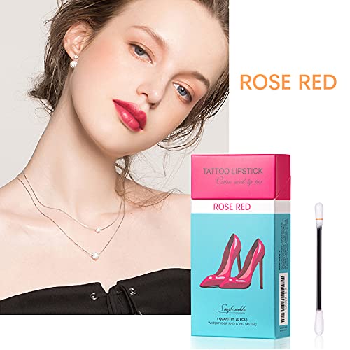 20 Pcs/Box Tattoo Lipstick Cotton Swab, Women Portable Long Lasting Lip Gloss Cotton Swab Matte, Lipstick Cotton Swab Durable Liquid Non-Stick Lipstick (Rose Rde)