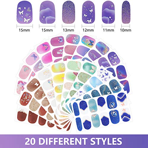 20 Sheets Nail Wrap Full Wrap Nail Polish Stickers Self-Adhesive Nail Art Decals DIY Nail Art Stickers with Nail Files, Strips Manicure Kits Nail Art Decoration for Girls (Butterfly Style)