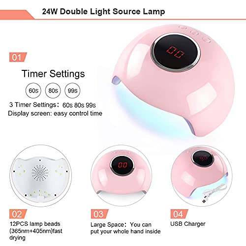What You Get: Full size of 20 colors classic nude white gel nail polish set, durable 24W nail lamp dryer, nail art designs manicure tools and nail art decorations accessories which is high quality gel nail kit for a cost-effective price!