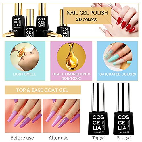 COSCELIA 20 COLORS Gel Nail Polish Kit with U V Light