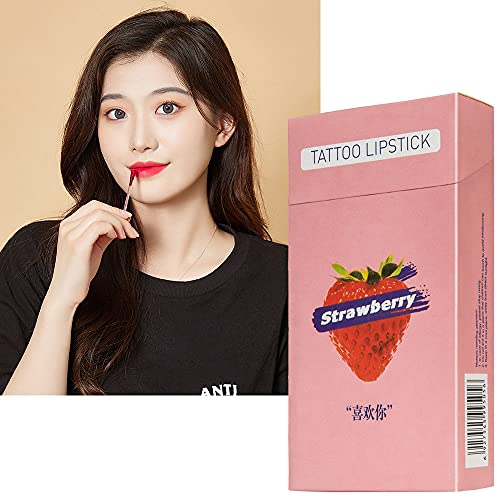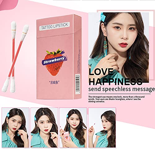 20PCS Tattoo Lipstick Cotton Swab Durable Waterproof Non-Stick Tattoo Lipstick Portable Lip Tint(Strawberry Color)
