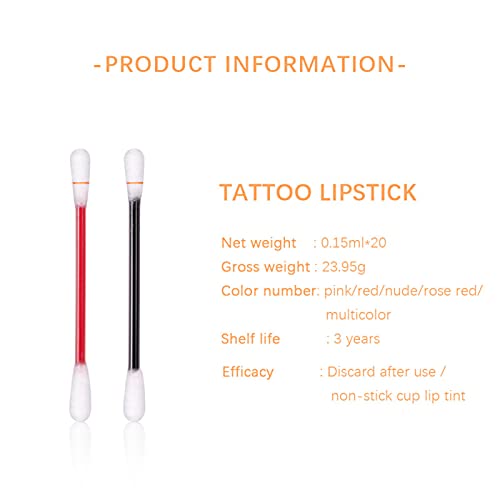 20Pcs Tattoo Lipstick Cotton Swab, Waterproof Durable Liquid Non-Stick Lipstick, Easy to Carry, Gifts for Women