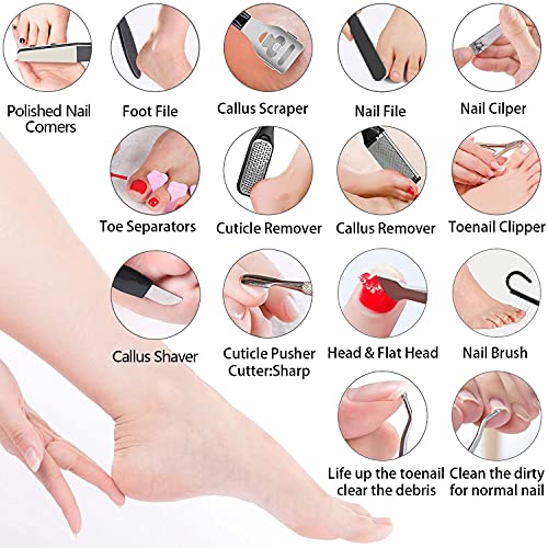 23 in 1 Professional Pedicure Tools Set, Banral Foot Care Scrubber Pedicure Kit Manicure Foot Scrubber Nail Tools Supplies Set, Stainless Steel Foot Rasp Foot Dead Skin Remover Callus Remover for Feet