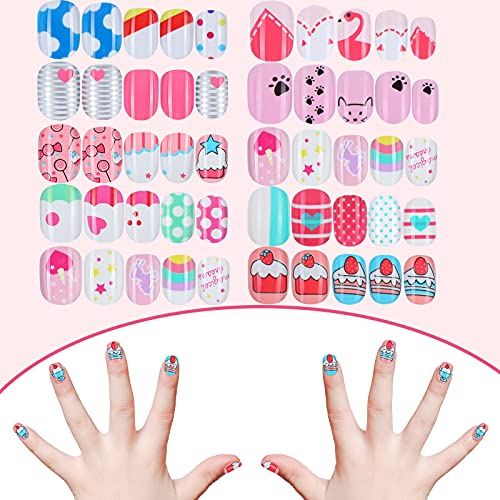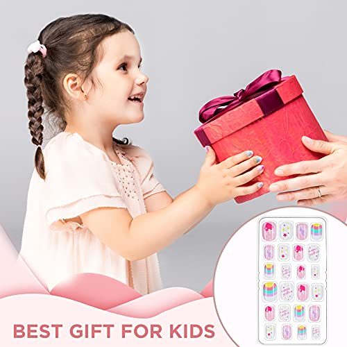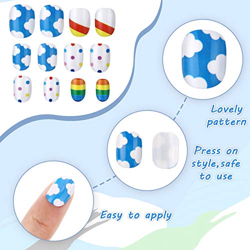 Rich patterns: our children short false nails are designed with different patterns such as rainbow, cake color and lovely styles, full of childlike feeling, suitable to use them to create dreamy nail