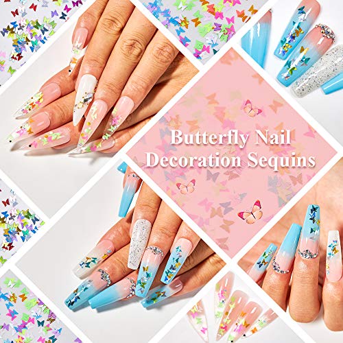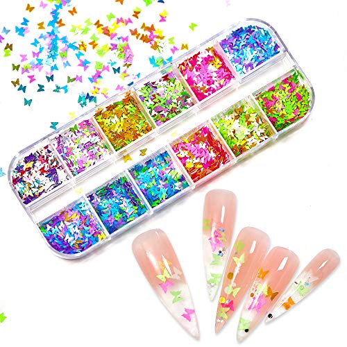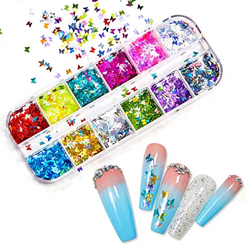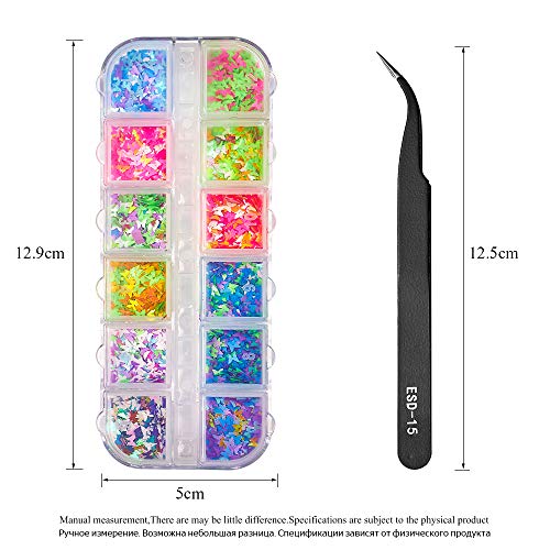 12 Colors Butterfly Nail Glitter Sequins 3D Holographic Laser Nail Decals Come with A Stainless Steel Tweezer for DIY Nail Art Decoration