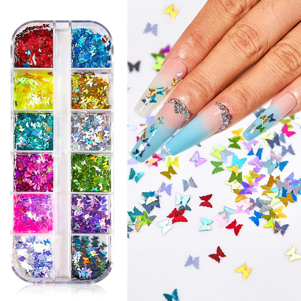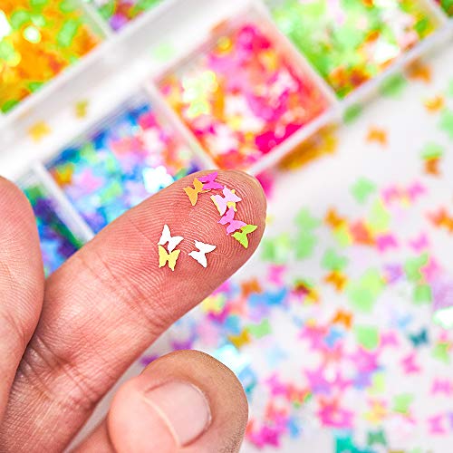 Holographic butterfly confetti: the butterfly confetti glitters are coming in 12 different colors with high luster and color retention, which is safe, non-polluting and harmless to be applied on nails, eyes, face and any part of the body as body glitter to give you a brighter and eye-catching effect
