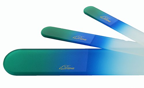 This Premium file set by iDiva is Czech Republic made tempered glass and includes 3.5, 5.5, & 7.5 inch. They are guaranteed to never wear out or wear down. They can be used on natural or artificial nails. Continued use reduces chipping, peeling and splitting of natural nails. Won’t tear or harm delicate skin – safe for diabetics and babies. Filing surface is non-porous, double-sided and permanently etched into the glass. Made from float glass, the same process used to produce wine goblets and crystal vases. Environmentally friendly – NO LEAD is added or chemicals used during the manufacturing process. Tempered and hardened for durability and safety, 102% stronger than standard glass. Each file comes with a plastic sheath.