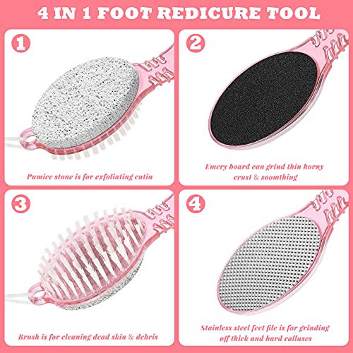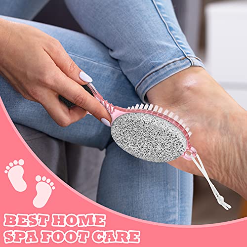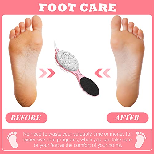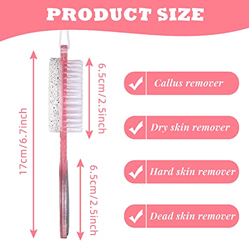 3 Pieces 4 in 1 Foot Callus Remover, Multi-functional Pedicure Scrubber Exfoliator Tool with Pumice Stone, Hand Toe Nail Cleaning Brush, Foot Rasp for Home Foot Care (Pink)