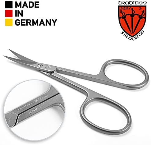 3 Swords Germany – brand quality STAINLESS STEEL INOX CURVED CUTICLE SCISSORS with case, manicure pedicure grooming – professional finger & toe nail care by 3 Swords, Made in Solingen Germany (00112)
