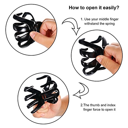 Available sizes: large size: 3.35 inch/ 8.5 cm in length, 3.15 inch/ 8 cm in width, 2.04 inch/ 5.2 cm in height; Small size : 1.6 inch/ 4 cm in length, 1.18 inch/ 3 cm in height, 2 sizes fit for most types of hair, especially for the thick long hair; We provide you with several size options, please refer to pictures for detailed information