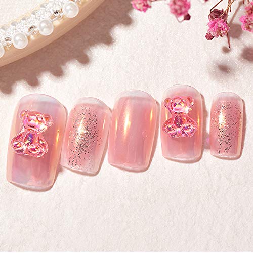 48pcs 3D Cute Bear Resin Nail Art Decorations- Crystal Bear Shaped Aurora Rhinestones in 6 Styles Nail Glitter Jelly Ornaments in 3 Sizes Nails Art Accessories for Nail Art Design Manicure Tips Decor