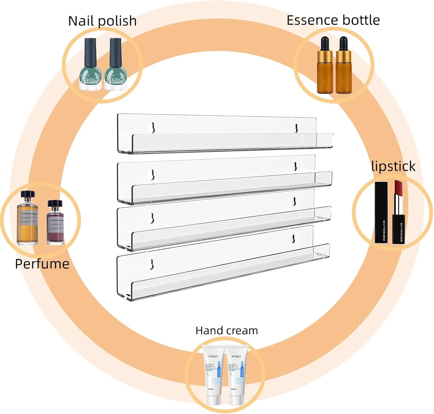 The wall mounted acrylic nail polish rack can hold nail polish and magazines.And is suitable for holding various brands of nail polish, such as Opi, China Glaze, Nubar, Essie, etc.Creating a beautiful wall space, so that your nail polish bottles and books are organized, available at any time.