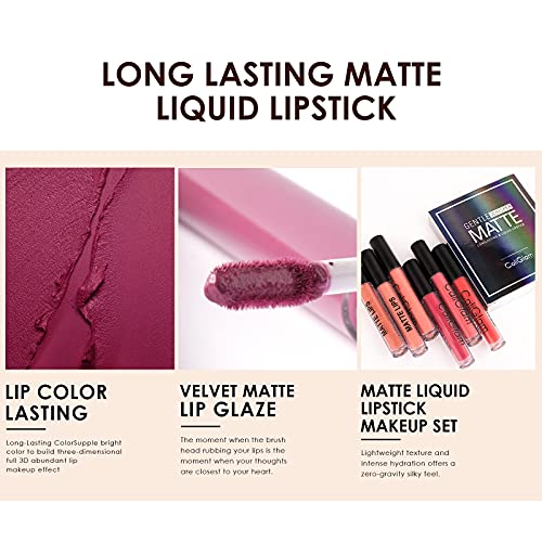 6 Colors Velvet Liquid Lip Stick Set, full-size lip gloss of the most popular colors. Charming matte, long-lasting and waterproof, Not stick cup, do not fade.