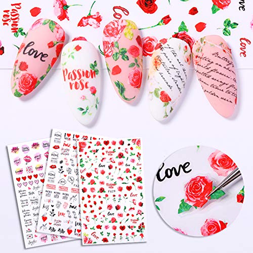 Patterns – Assorted patterns with butterflies, flowers, rose, black words, letters, hearts, red lips are included. Multiple choices for fashion nail art DIY decorations.