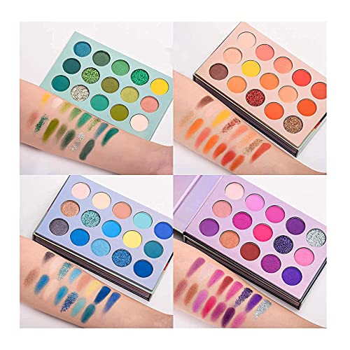 Rich in Color and Easy to Match: Professional 60 pop colors eyeshadow palette. Featuring 4 kinds of color series: green, red, blue and purple. Abundant colors make it easy to create various attractive and charming eye makeup looks.