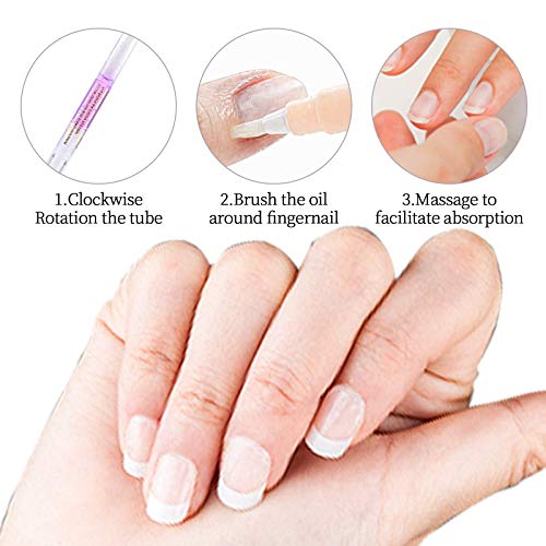 ????Keep you away from cracking of nail polish, gel, and acrylic nail enhancements ????Convenient brush pen applicator. Take it on the go, in your purse or in your car REMARK : ????Rush a tiny amount of oil all over your nail, cuticle, sidewalls and under the free edge of your nail. You only need a thin layer of oil so they feel slightly slippery. There is no need to look “all greased up.” You only need 1 or 2 clicks of oil per nail. ????When you feel the oil has been absorbed and your nails aren’t slippery, your nails are ready for you to reapply more oil. You might need 5 to 10 applications the first day , After it two or three times as a day.