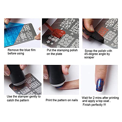 Easy to Use:Easy operation, just transfer the image to the stamper, fill the contour with different nail polishes, and in just a few minutes, follow the steps, you can create your favorite nail decoration.
