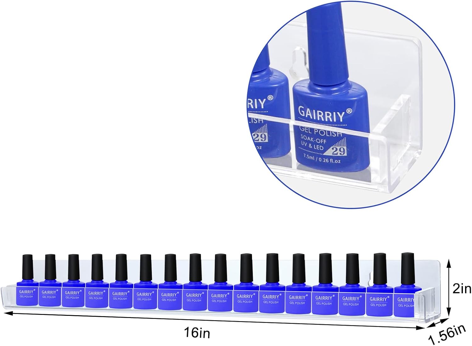 Discover Our Nail Polish Organizer: Crafted from high-quality acrylic, our nail polish holder measures 16.5″ x 1.6″ (L x D). Each shelf accommodates 12-16 nail polish bottles, offering an exquisite wall display to neatly organize and conveniently access your nail polish and perfumes.