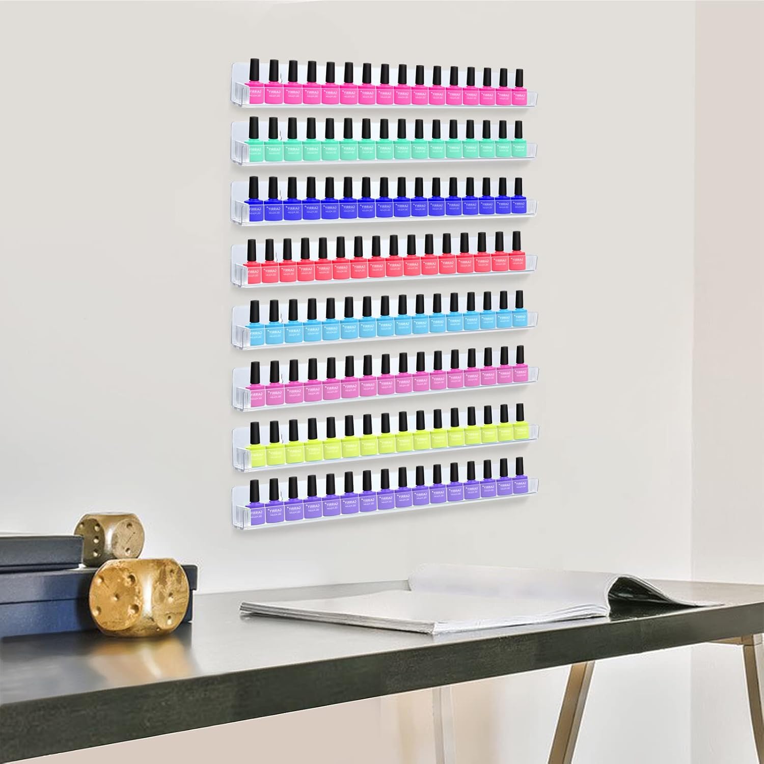 8 Pack Nail Polish Rack Wall Mounted Shelf with Removable Anti-Slip End Inserts, Clear Acrylic Nail Polish Organizer Wall Rack Display 128 Bottles…