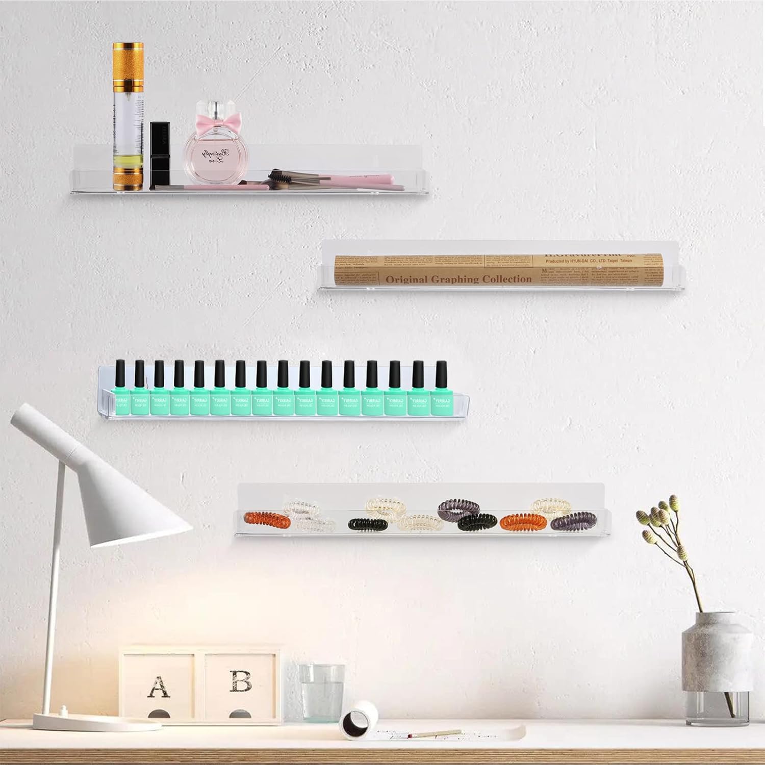 Versatile Utility: Beyond a nail polish holder, it doubles as functional acrylic wall shelves. Ideal for organizing perfumes, cotton balls, lipstick, nail tools, eyeshadow palettes, books, collectibles, vinyl records, and more.
