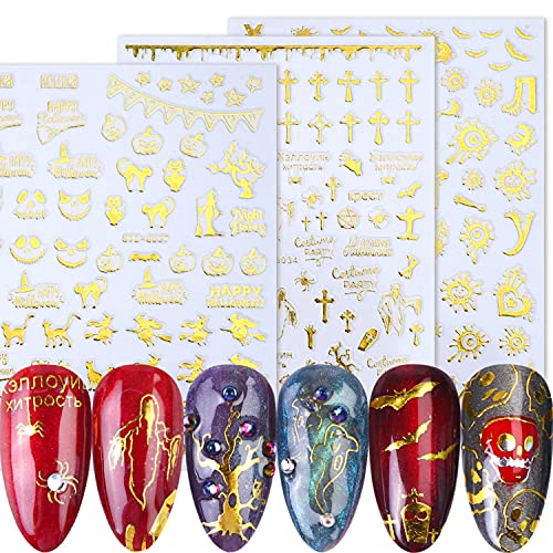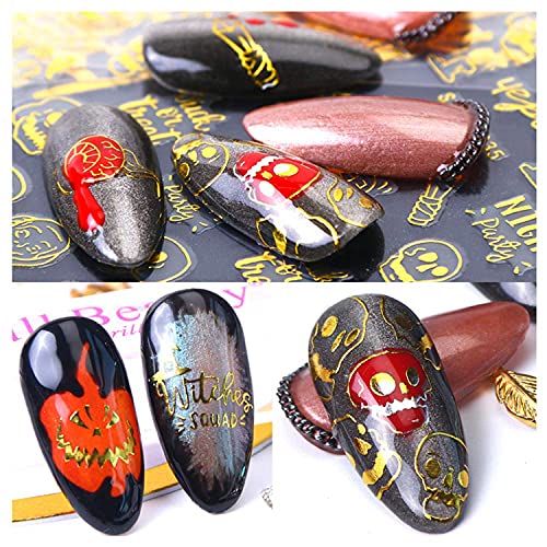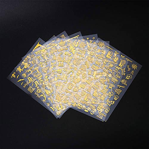 Features: 3D Gold Halloween Nail Sticker colorful Design Patterns include style Letters Pumpkin Bat Ghost Skull Horror Decals Manicure Decoration