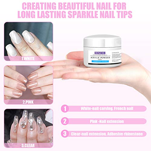 【Acrylic powder and liquid set】: You will get professional single acrylic nail polish and acrylic powder. The nail polish is MMA-free, non-yellowing, strong adhesion, and super convenient and safe to use. Acrylic powder has the ability to self-level and adhere to natural nails. You can use this acrylic nail set for DIY, nail extension, adhesive, nail carving, French manicure, etc.