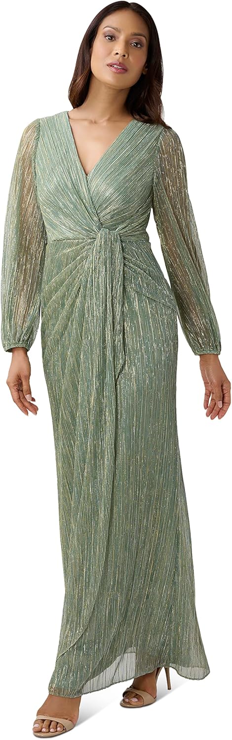 Adrianna Papell Women’s Metallic Mesh Draped Gown