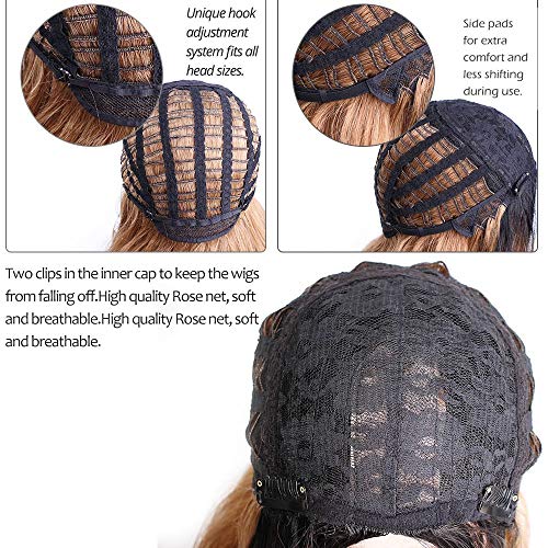 -Adjustable Cap Size: This is a medium cap (Average Cap Size) with adjustable straps of 22″-22.5″. You can wrap it around a fixed position to adjust different head sizes. It looks natural and gorgeous from any angle, comfortable to wear, and suitable for most women. Behind the inner net of the wig, there are 7 adjusting buckles. All you have to do is to buckle the adjustment buckle into a suitable position to make the wig fit your head circumference.