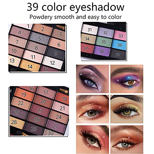 All-in-One Makeup Gift Set, Multi-Purpose Makeup Gift Kit 49 Colors Combination Palette Full Makeup Essential Starter Kit, Included Eyeshadow, Lip Gloss, Blusher, Eyeliner, Mascara