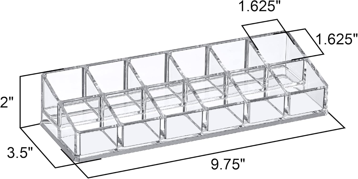 Amazing Abby – Glamour – 12-Slot Acrylic Nail Polish Organizer, Lipstick Holder, Lip Gloss Organizer, Cosmetic Storage Display, Perfect Storage Solution for Drawer, Vanity, Bathroom, and More