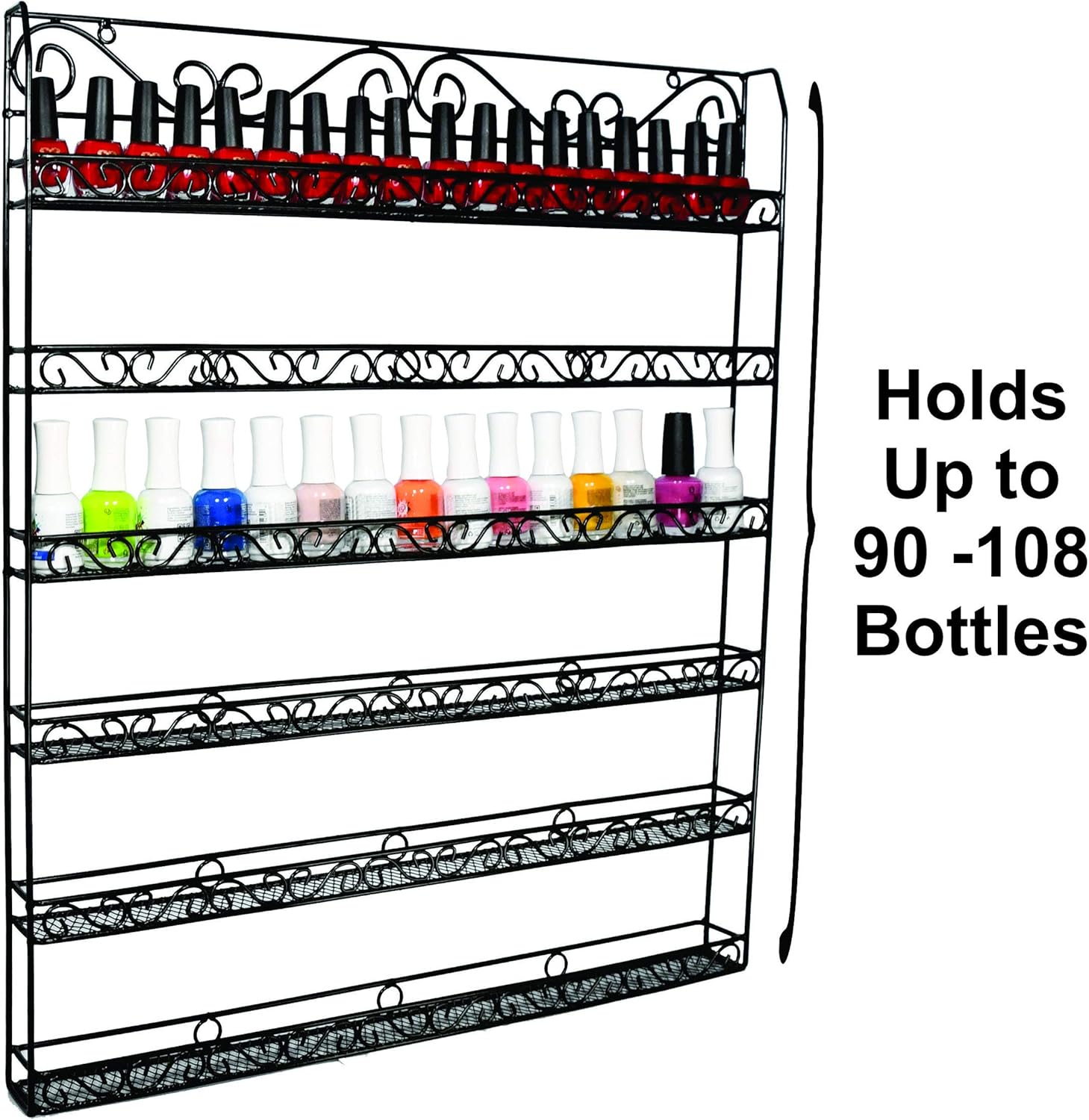 ⭐ DESIGN: With 6 tiers, you are able to hold up to 108 nail polish bottles essential oil bottles and 108cosmetic beauty jars. The pre-assembled shelf allows you to quickly mount the shelf on the wall within minutes. With the large capacity up to 16-18 bottles per tier – a total of 96-108 bottles in 6 tiers.
