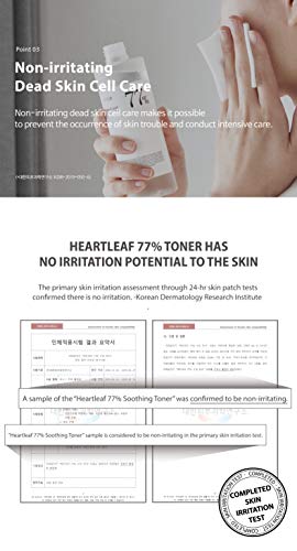 HEARTLEAF 77% TONER HAS NO IRRITATION POTENTIAL TO THE SKIN