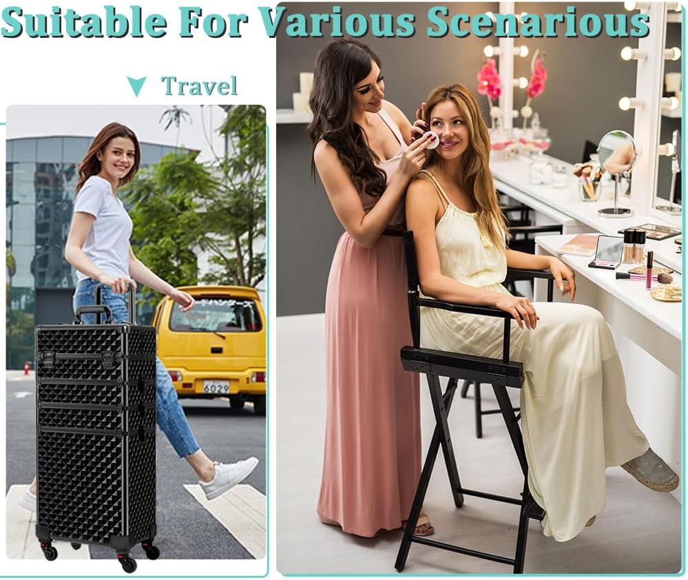 💄🎁【Multi-functional Cosmetic Trolly】4-in-1 makeup case consists of 4 detachable compartments which can be freely combined as your demands. The top compartment can be used as a small makeup carrying case; the middle two drawers can be removed to make this 4-in-1 makeup case into a 3-in-1/2-in-1 case according to your work requirements.