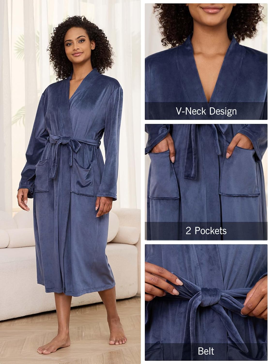 Artfasion Women Robe Lightweight Bathrobe: Length V-Neck House Coats Velor Winter Robes for Spa Home Leisure Sleep Travel