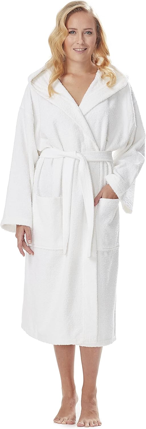 Arus Women’s Classic Hooded Bathrobe Turkish Cotton Terry Cloth Robe