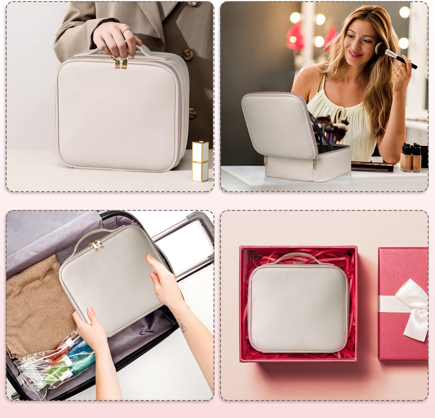 👜【Perfect Gift Choice】:A delicate beige jewelry box comes along with this makeup organizer case which works excellent for carrying spare earrings, rings, necklaces and other jewelry.