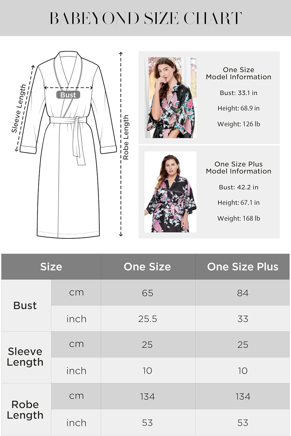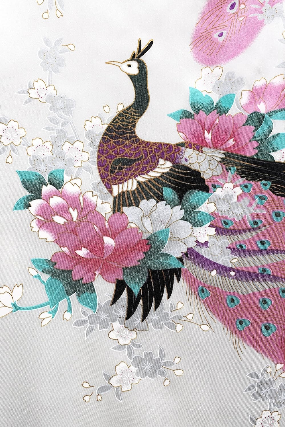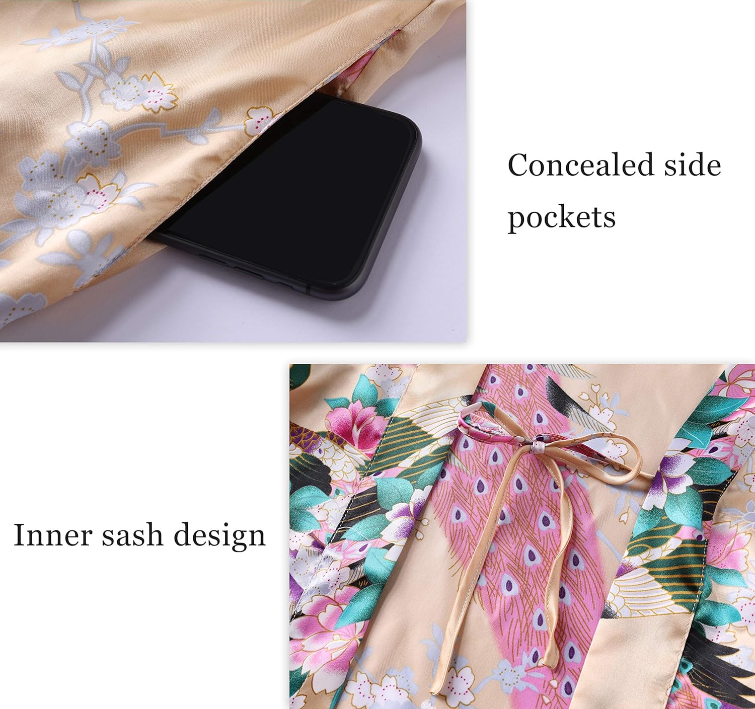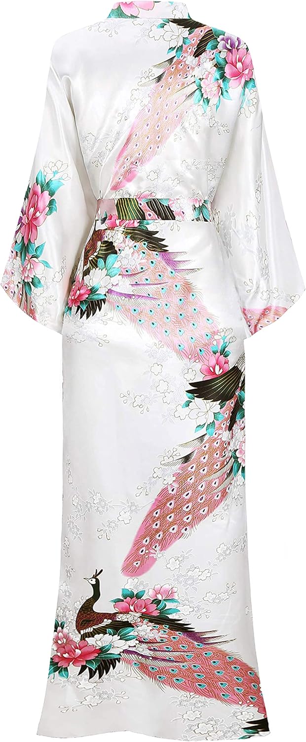BABEYOND Women’s Kimono Robe Long Satin Robes with Peacock and Blossoms Printed Kimono Nightgown