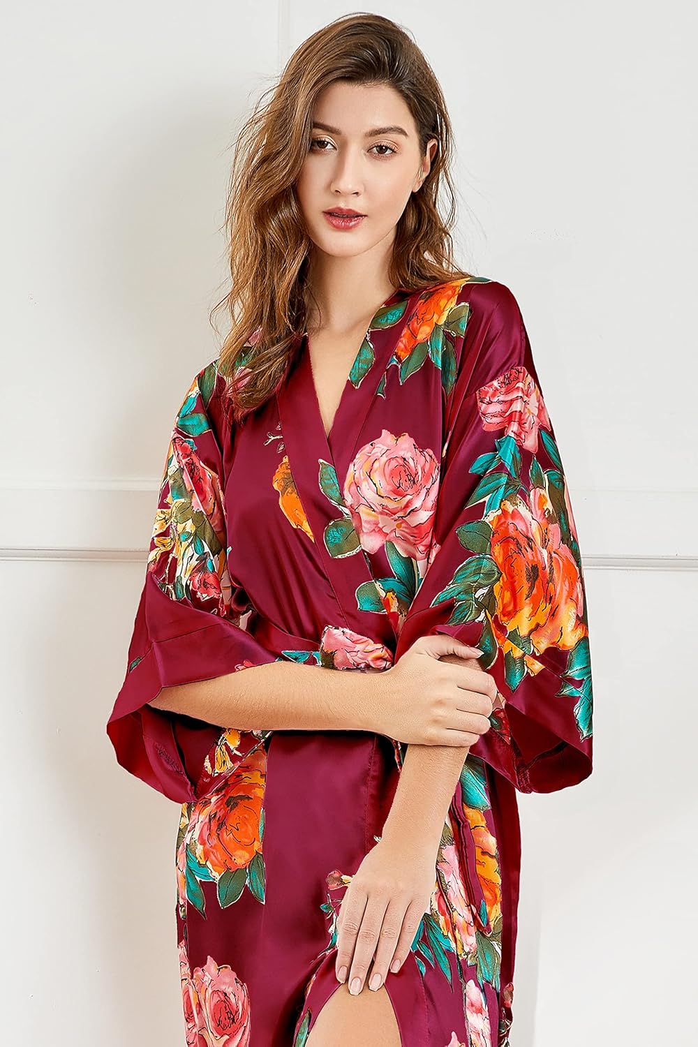 For Wedding: Floral pattern satin robes are perfect for your bridal party. Perfect gifts and Wedding Robes, Bridal Robes, Bachelorette Robes, Bridal Shower Robes, Bridal Party Robes for bride and bridesmaids. For Comfort: Lightweight and soft, making it the perfect nightgown at home. Wear it around