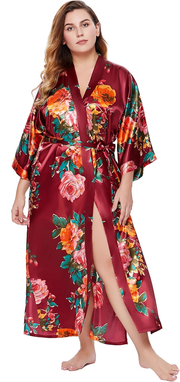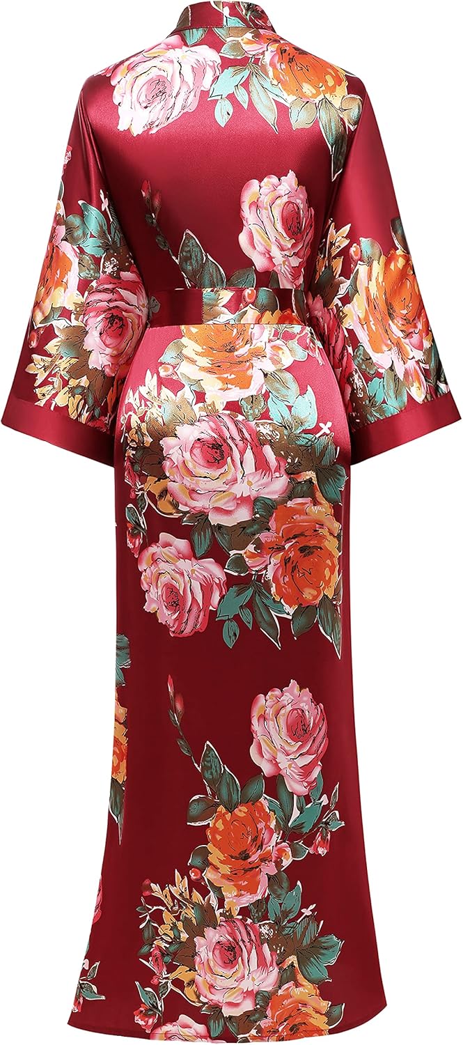 BABEYOND Women’s Kimono Robe Long Satin Silky Floral Lightweight Bridesmaid Wedding Bachelorette Party Robe